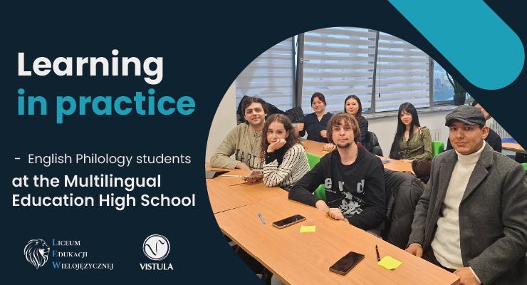English Philology students of the Vistula University, pursuing the EFL Teaching and Tutoring specialisation, took part in classes at the Multilingual Education High School (LEW). The visit was organised thanks to the kindness of Headmistress Agata Żurowska, a member of the AFiB Vistula Business Council.