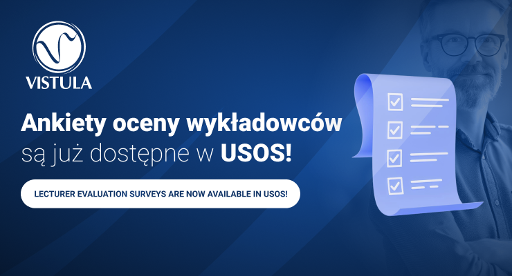 informujemy, że od 17 kwietnia do 25 maja 2026 r. w systemie USOS dostępne są Ankiety Oceny Zajęć Dydaktycznych. Wasza opinia na temat wykładowców i zajęć jest dla nas bardzo cenna i pomoże w dalszym doskonaleniu jakości nauczania.