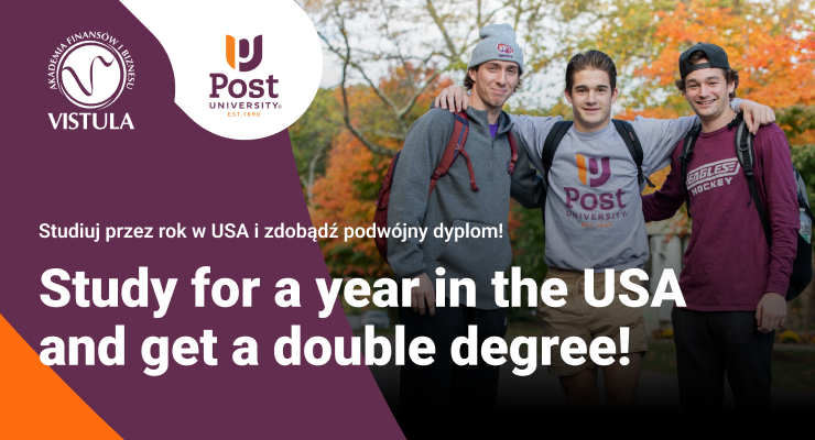 Akademia Finansów i Biznesu Vistula uruchomiła prestiżowy program podwójnego dyplomu we współpracy z amerykańskim Post University. To wyjątkowa propozycja dla studentów kierunków Zarządzanie oraz Finanse i rachunkowość, którzy chcą połączyć studia w Warszawie z doświadczeniem akademickim w USA i w ciągu zaledwie 4 lat zdobyć dwa dyplomy licencjackie.